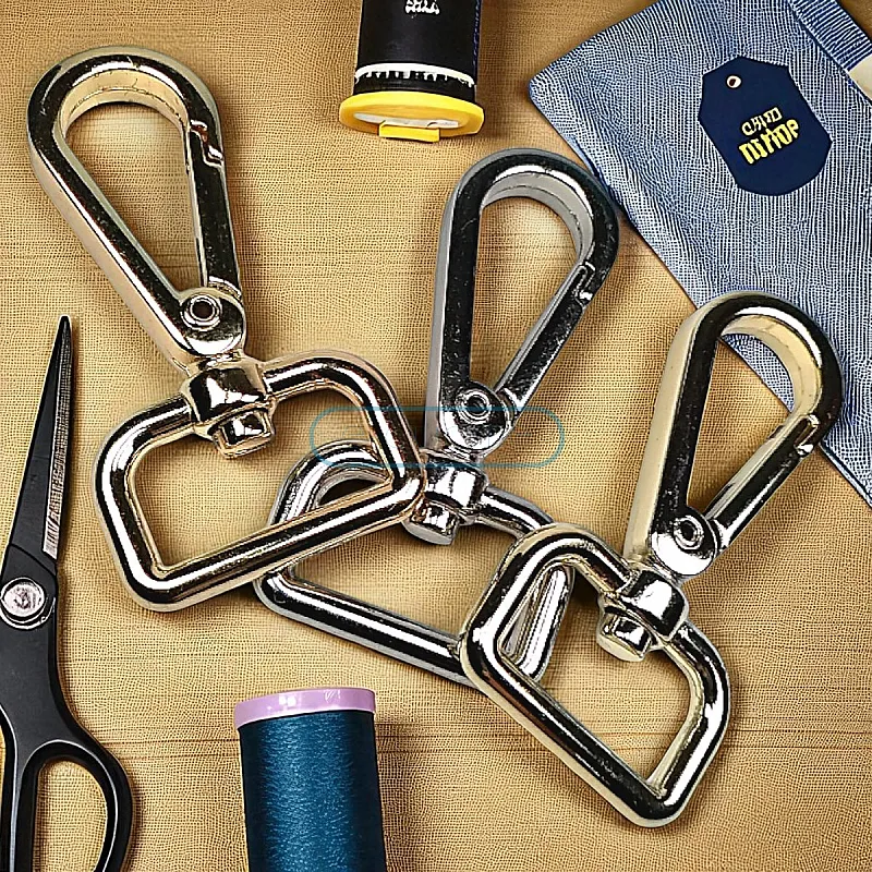 Zamak metal malzemeden üretilmiş olan bu badem kanca modeli, şık görünümünü fonksiyonel yaylı döner yapısıyla birleştiriyor. Ürünün dış boyutları 52 mm uzunluk ve 27,3 mm genişliktir. Askı kısmı 23 mm x 11 mm, iç boşluk ise 10 mm x 20 mm olarak tasarlanmıştır. Çanta aksesuarları, anahtarlıklar ve promosyon ürünlerinde kullanıma uygundur.