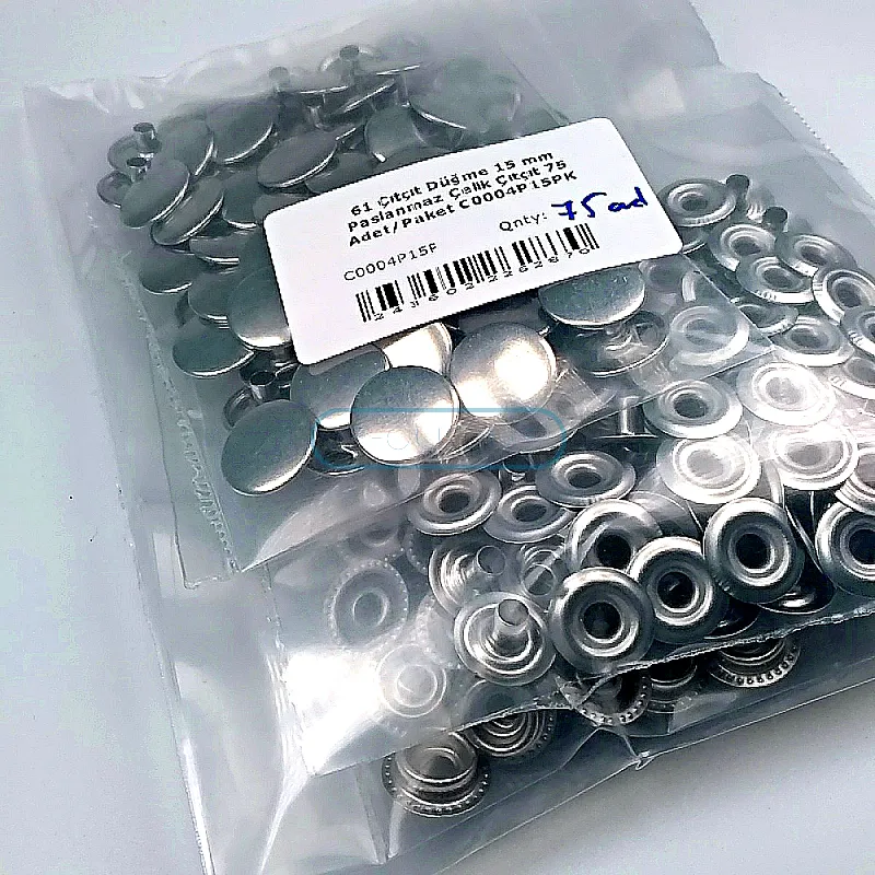 61 Snap Fasteners 15 mm Stainless Steel Snap Fastener 75 Pcs/Pack C0004P15PK