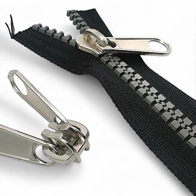 Metal Imitation Molded Zippers are a type of zipper that imitates the teeth of metal zippers in appearance. Their external appearance resembles metal teeth zippers. The general purpose of use is to lighten the product. As it is known, metal zippers are at a disadvantage in some products in terms of weight; as the length of the zipper increases, its weight increases. Lightness becomes an advantage in metal imamitation chunky zips.