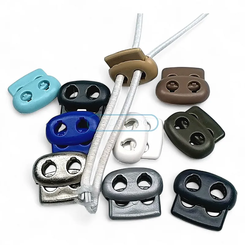 Bu plastik stoper, 20 mm eninde ve 22 mm boyundadır. Çift 5 mm delikli yapısı ile kordonları üstten basmalı mekanizmayla güvenli şekilde sabitlemenizi sağlar.