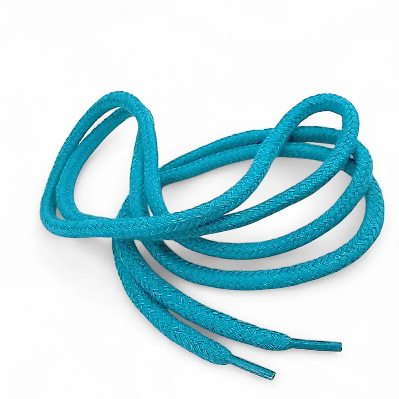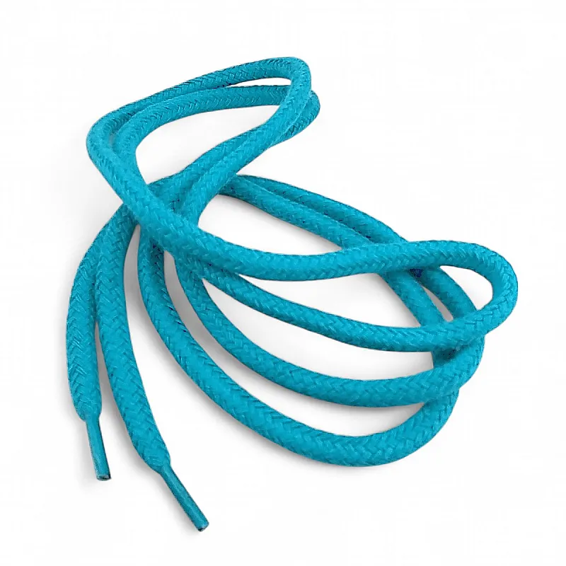 130 cm Turkuaz Renkli, Pamuk Dolgulu, Asetat Uçlu Yuvarlak Tres Kordon – 6-6.5 mm Kalınlık, 100’lü Paket YKRD00PTrq